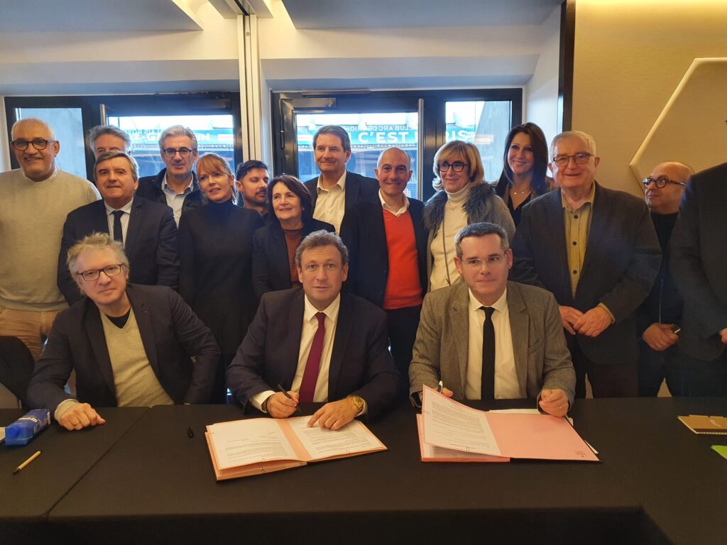 Signature le 17/01/2023 de la convention de partenariat ADN Tourisme / Ministère des Sports et des Jeux Olympiques et Paralympiques par François de Canson et Gérard Baudry, devant le Conseil d’administration d’ADN Tourisme et Monsieur Thierry Rey, conseiller spécial pour Paris 2024 et également partenaire d’ADN Tourisme dans le cadre du label Terre de Jeux 2024.
