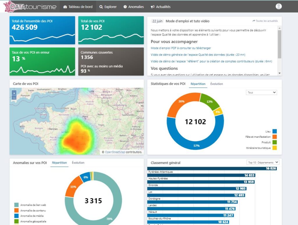 Le dispositif open data DATAtourisme se dote d’un nouveau module permettant aux territoires de surveiller et optimiser la qualité de leurs données d’information touristique.